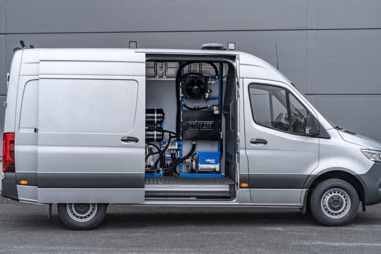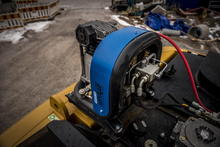 Поршневые компрессоры с гидроприводом вырабатывают сжатый воздух, используя для этого гидравлическую энергию базового спецавтомобиля. Поток гидравлического масла подается на двигатель, соединенный с коленчатым валом поршня. Поршень создает давление воздуха, сжатый воздух направляется в резервуар, установленный на шасси автомобиля. К резервуару подсоединяется пневмоинструмент.